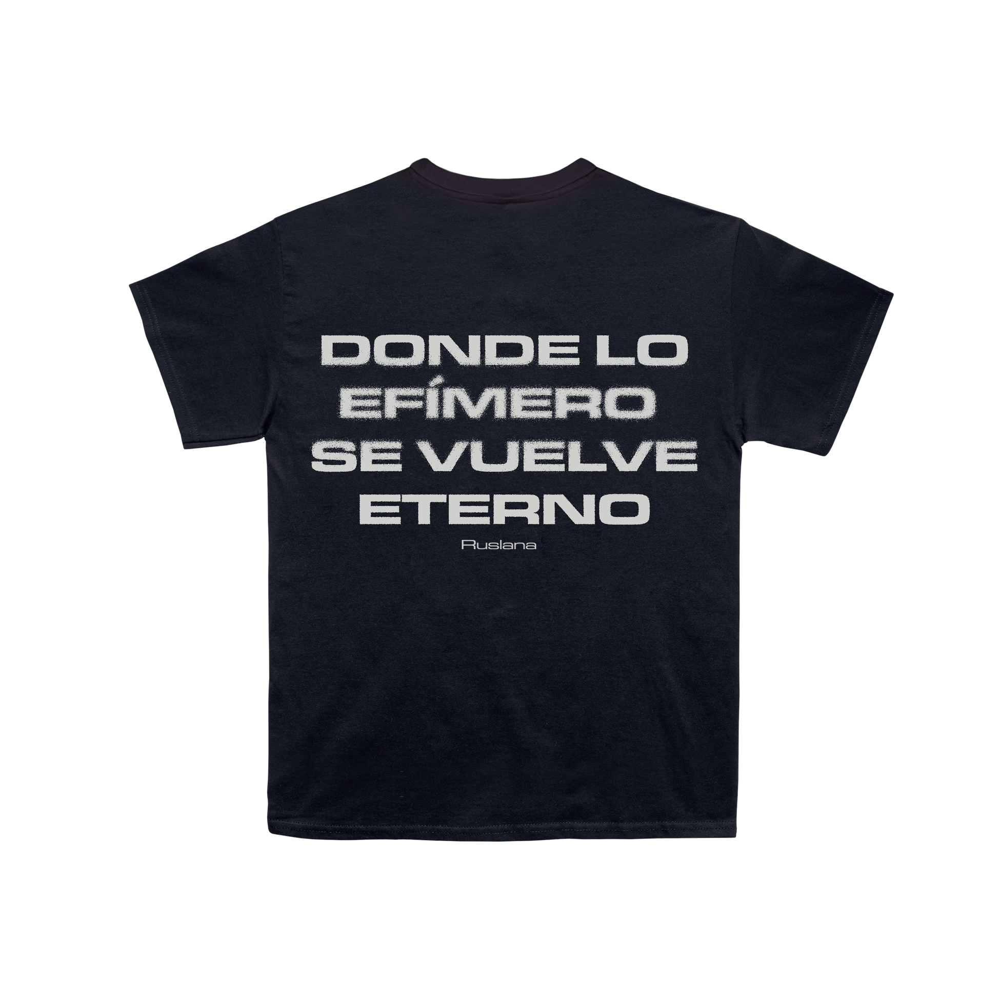 Camiseta oficial negra con el título del disco y logotipo al frente. En la parte trasera la frase “DONDE LO EFÍMERO SE VUELVE ETERNO” y nombre de la artista.